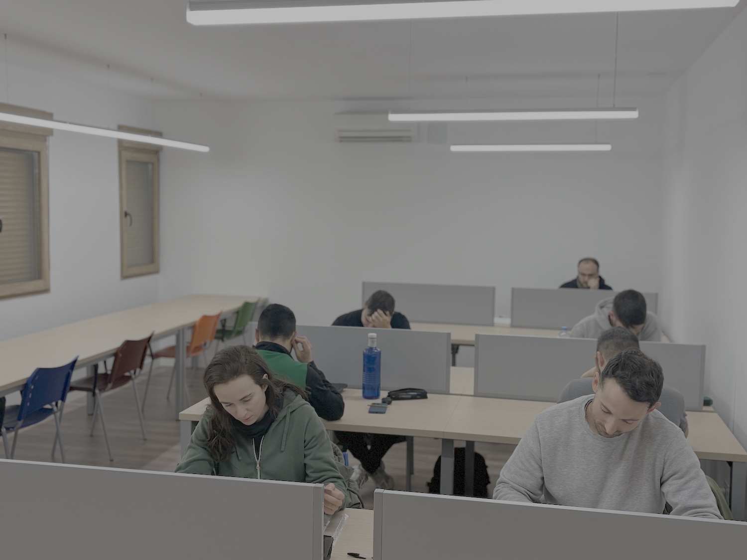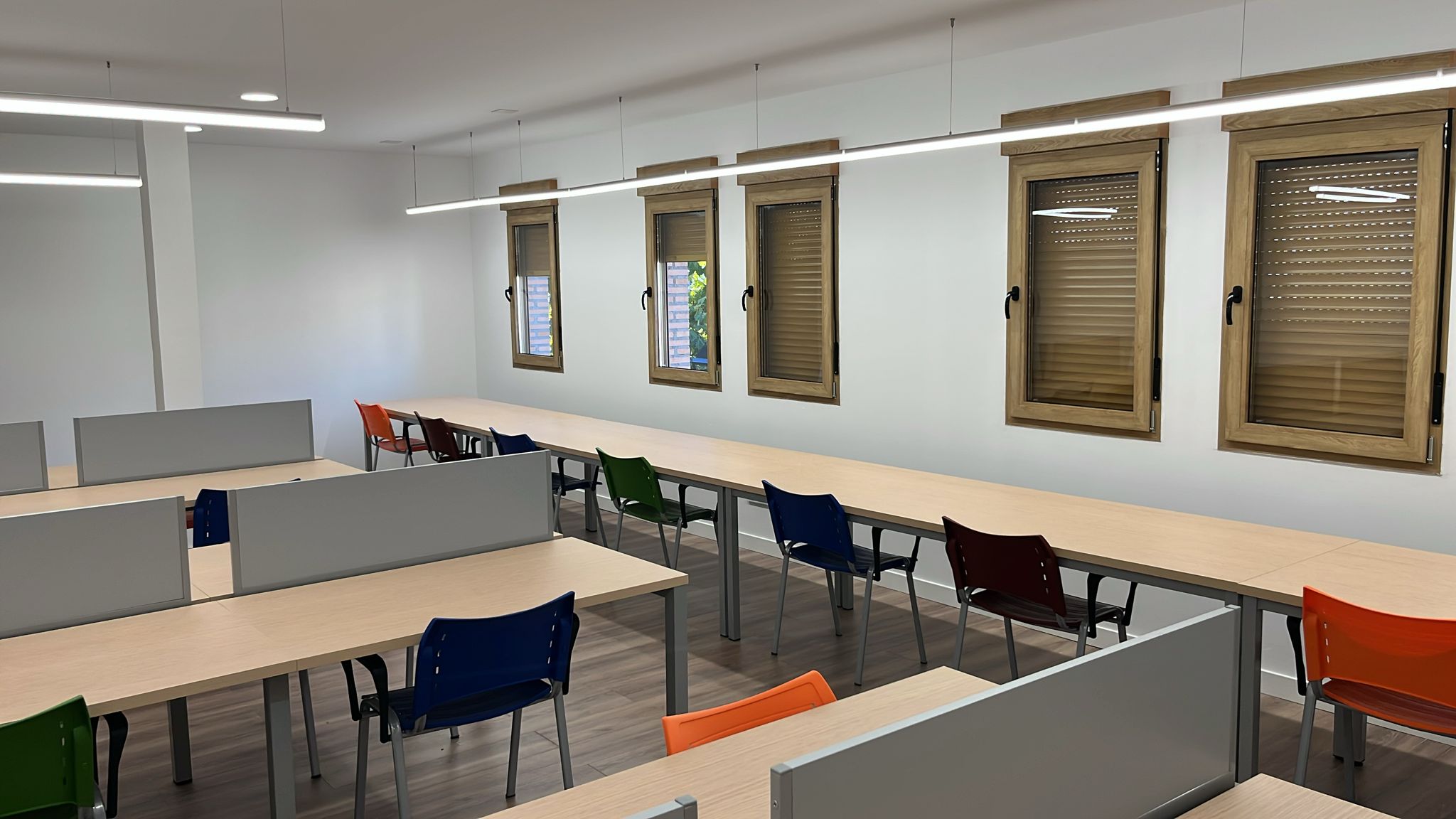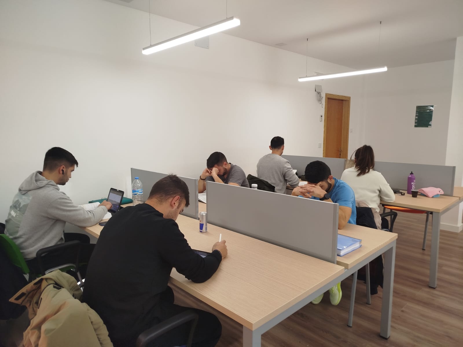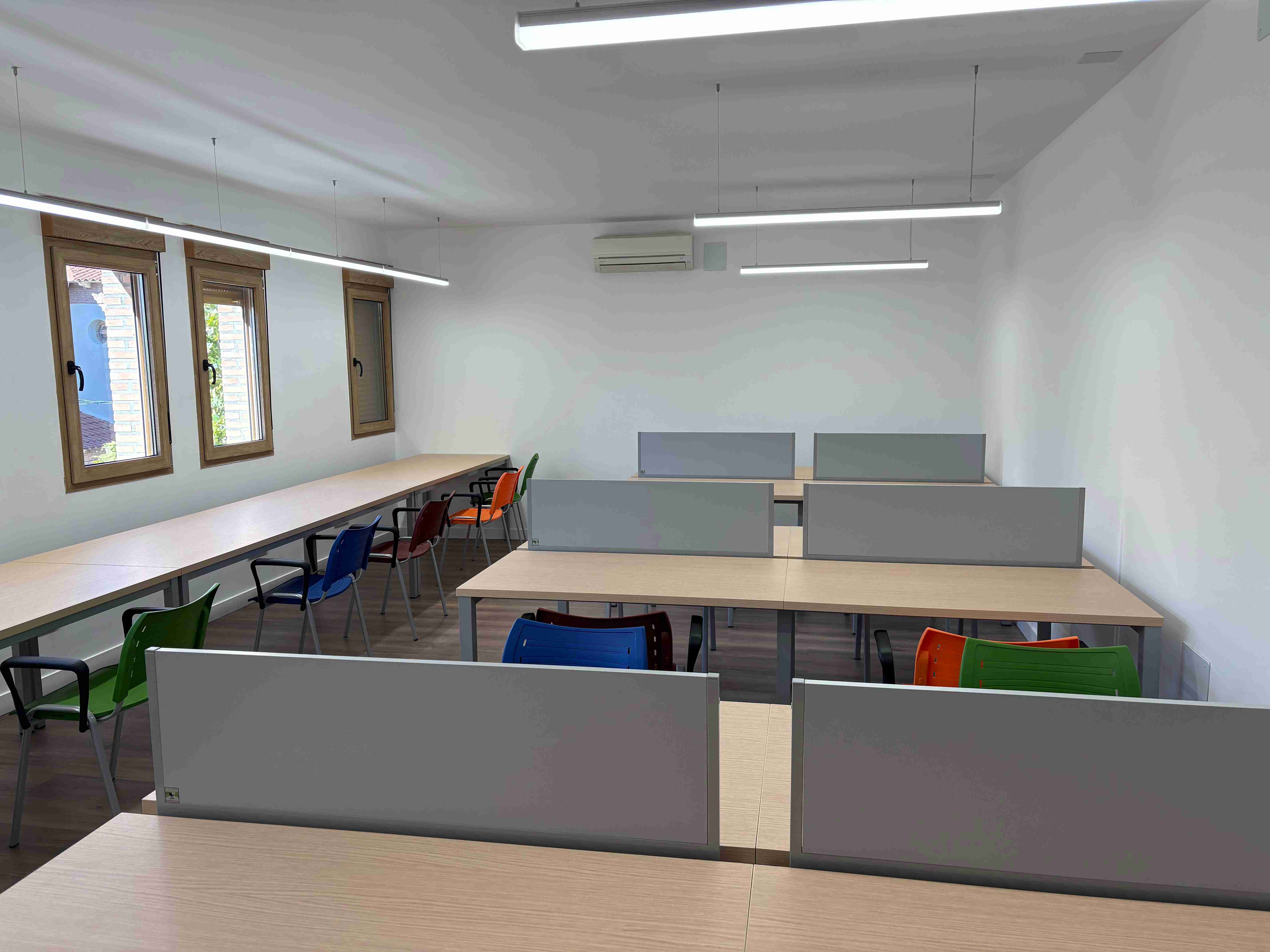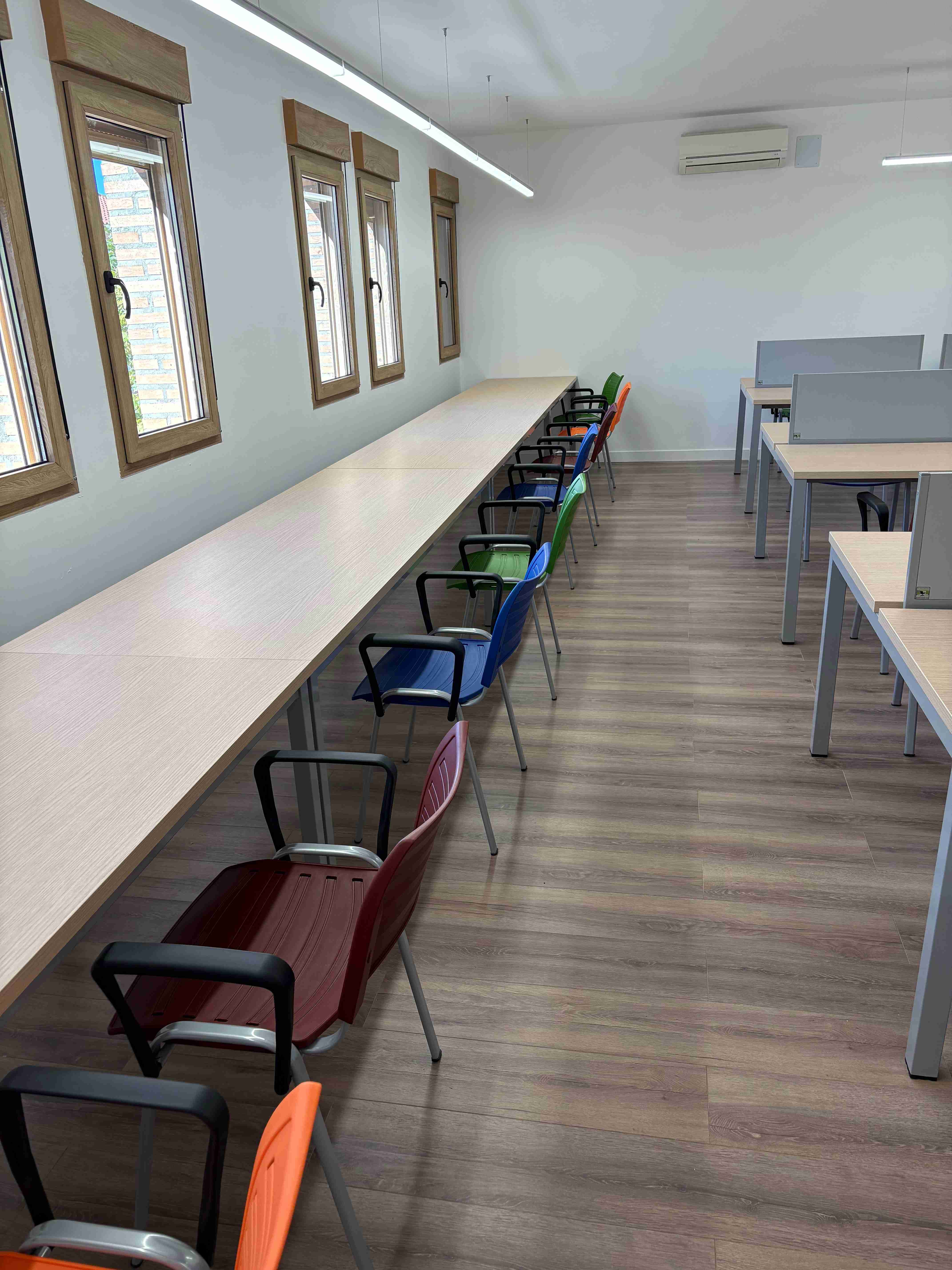 Las instalaciones incorporan mobiliario ergonómico, iluminación LED, enchufes para dispositivos electrónicos y sistema de climatización. Además, el diseño del espacio favorece la entrada de luz natural, creando un ambiente apropiado para el estudio.